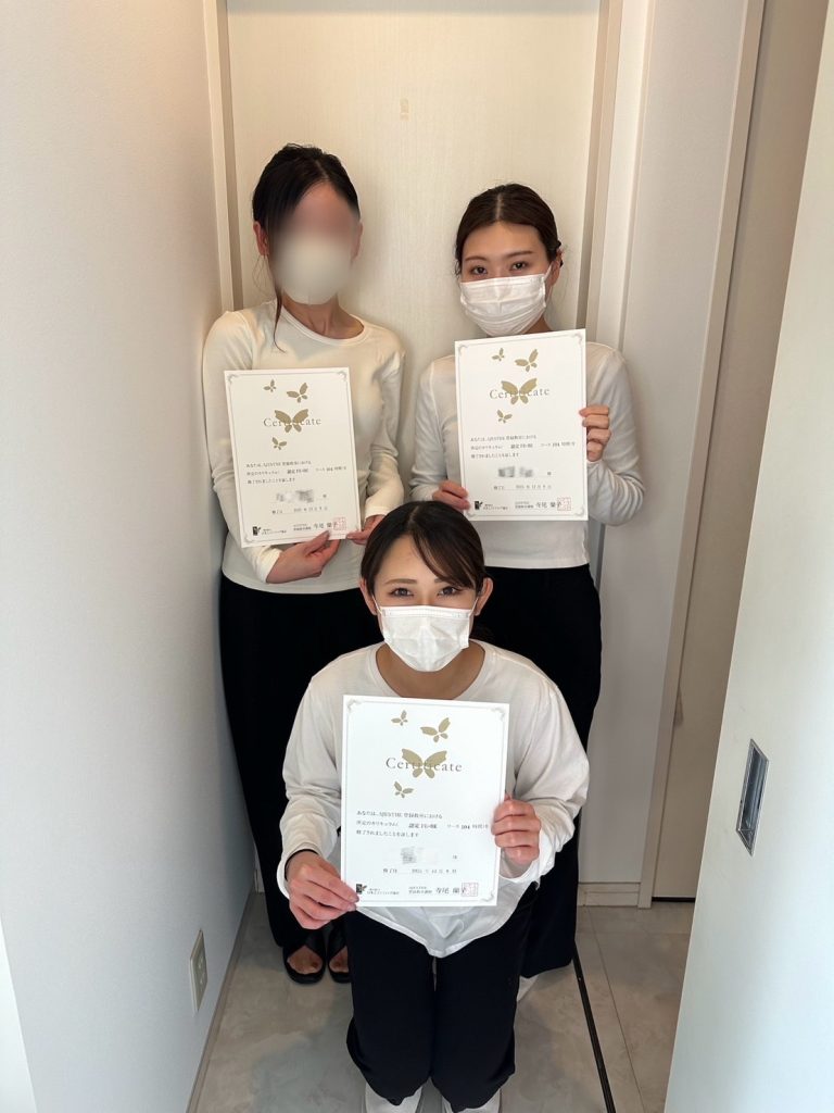 日本エステティック協会認定資格を取得し、ご卒業後も更なる飛躍と今後のご活躍をお祈り致します。